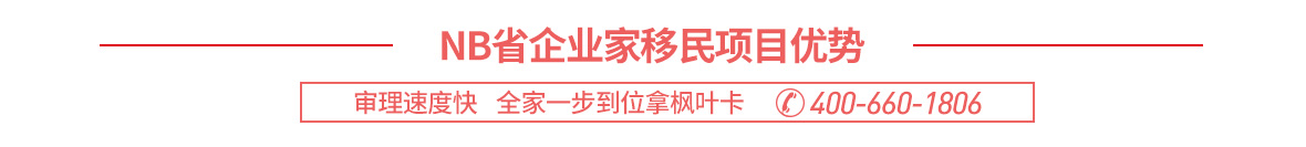 1999年2月,加拿大NB省(New Brunswick新不倫瑞克?。┱图幽么舐摪钫炇鹆岁P于NB省自主甄選移民的協議,允許NB省在協議框架下甄選那些希望到加拿大NB省投資創業的海外企業家,以此來吸引外資,促進NB省的經濟建設。NB省企業家移民項目以家庭為單位,一步到位獲得無條件的永久居民簽證,一人申請,全家移民。