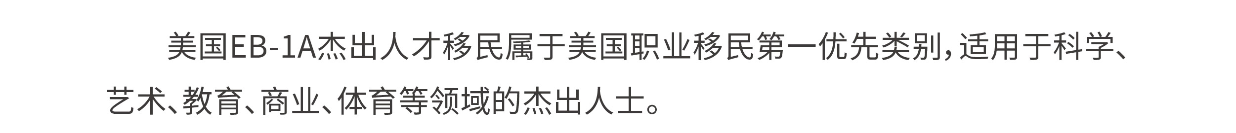 答:EB-1A指職業移民第一類優先中的杰出人才,是指在其專業領域內具有特殊才能和具有很高成就的杰出人才,這些領域包括藝術﹑ 科學﹑ 教育﹑ 商業﹑ 體育等。