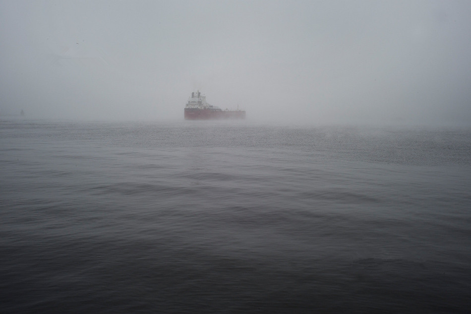 2014年6月20日,一艘船在大霧彌漫中離開明尼蘇達州杜魯日港。一場經由35號州際公路,從德克薩斯拉雷多到杜魯日的旅程在此接近尾聲。從“大熔爐”到“沙拉碗”,再到“織錦”,這些美國移民者們改變著自己,也改變著美國,而一切都是為了更好的生活。(來源:New York Times)