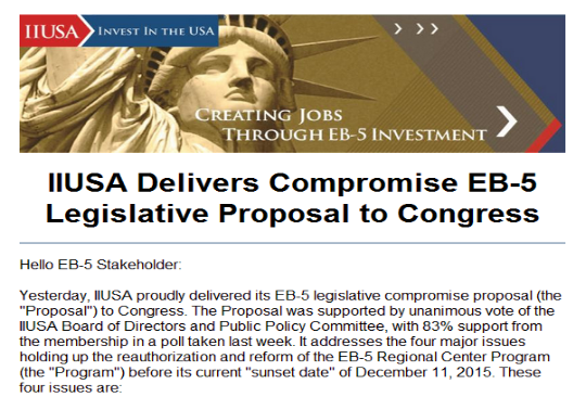 EB-5新聞:IIUSA向國會遞交了關于EB-5立法折中提案