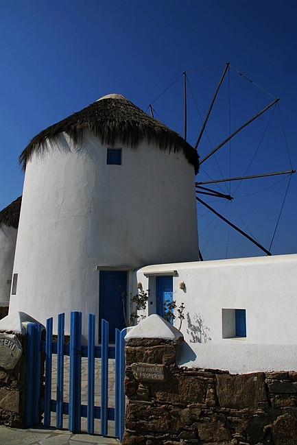卡特米利風(fēng)車群位于Kato Mili 山丘上,是米克諾斯最具代表性的標(biāo)志。風(fēng)車建于16世紀(jì),一共五座,屋頂用茅草覆蓋,原本風(fēng)車是用來(lái)磨麥的,不過(guò)現(xiàn)在已經(jīng)停止使用,卻變?yōu)橐坏烂利惖娘L(fēng)景。在這里俯瞰米島,愛(ài)琴海上的海鷗以及島上的各具特色的白屋盡收眼底。