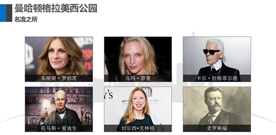 因地段高奢,很多社會名流都居住于此,這里也是聞名遐邇的明星聚集地。阿斯特、摩根、洛克菲勒、羅斯福都曾在這里居住過。華盛頓•歐文、華德•惠特曼、愛倫•坡、馬克•吐溫曾經在附近幾條街道散步,造就了這里獨一無二的強大氣場——名流奢貴氛圍與浪漫文藝氣息并存。這樣的氣場理所應當地吸引著社會名流。
