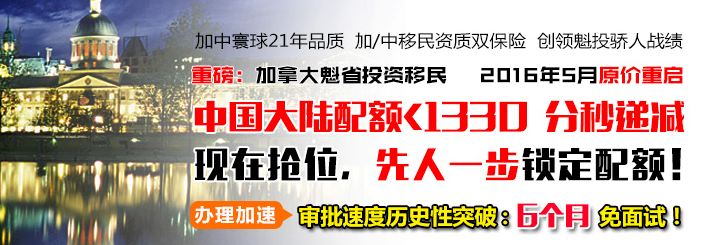 加中寰球 21年持之以恒,品質(zhì)鑒證實(shí)力 中國(guó)移民服務(wù)典范品牌 最專(zhuān)業(yè)權(quán)威移民機(jī)構(gòu) 持中國(guó) / 北美雙重資質(zhì) 最具影響力移民品牌 專(zhuān)業(yè)移民咨詢(xún): 400-660-1806 |