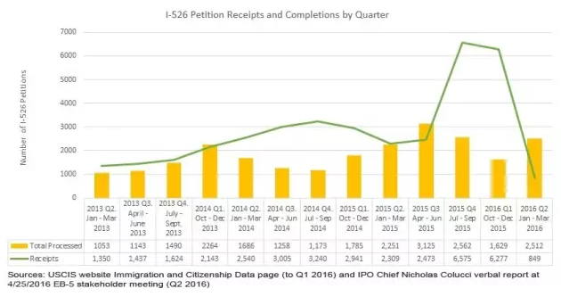 I-526的收件數(shù),第二季度,大幅下滑,見下圖: