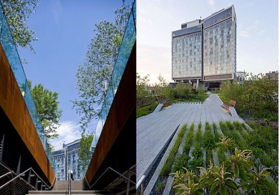 高線公園2009年向公眾開放,是由一條廢棄的高架鐵路改建成的空中花園走廊。從14街到34街,一路花花草草,可以走走停停,看看城市的天際線或者哈德遜河景。高線公園每年吸引了500萬游客,推動沿線房產(chǎn)價格節(jié)節(jié)攀升,也開創(chuàng)了新的公私合營模式。