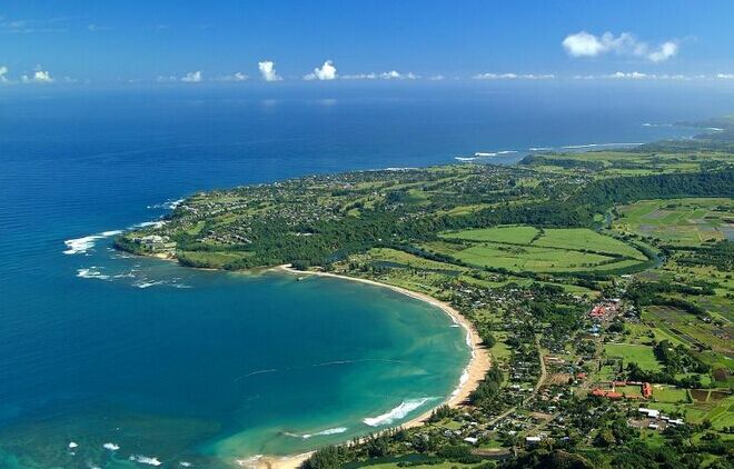 夏威夷群島擁有數百座海灘,但位于可愛島北岸的哈納雷灣是風景最為秀麗的一處。綿延 3 公里的沙灘擁抱著遼闊的蔚藍海灣,綠樹覆蓋的高山間點綴著多個瀑布,成為壯美的布景。自然美景是吸引游客來此的主要原因。隨著這里的開發,新增了幾個小型沖浪板和浮潛裝備租賃商店。這里還是欣賞落日的絕佳之地。碼頭上有一座遮陽小屋,就在從沙灘向西延伸至海灣的末端。一定要早點去,因為這里的停車場非常擁擠,并且通常在距離碼頭較遠的位置。