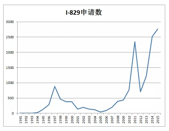 2. I-829申請趨勢圖(到2015財年止)
