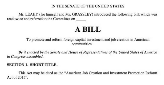 從新版本的名稱(chēng)來(lái)看,繼續(xù)還是叫:American Job Creation and Investment Promotion Reform Act of 2015,這是去年S.1501的延續(xù)。關(guān)于,S. 1501給整個(gè)EB-5行業(yè)帶來(lái)的震動(dòng),到現(xiàn)在恐怕還未消退。