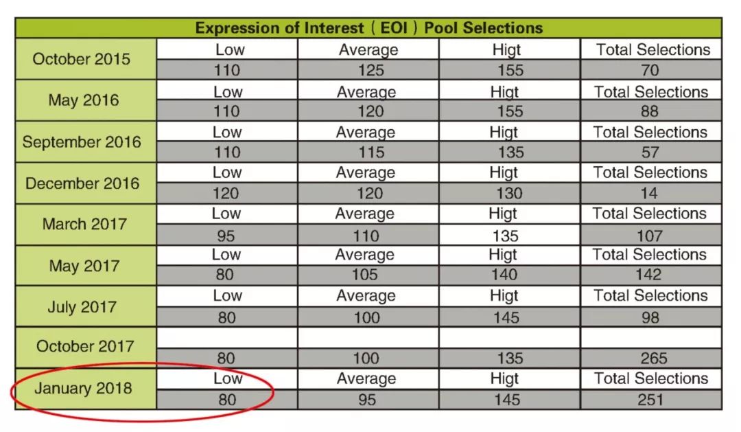 從2015年10月到2018年1月,薩省企業家移民共進行了9次EOI篩選,呈現如下趨勢: 最低分由最初的110分降至現在的80分。平均分也有原來的125分將至現在的95分。隨著EOI篩選分數的不斷降低,說明對申請人的學歷、語言等要求的門檻也越來越低,薩省企業家移民項目被選中人數越來越多,終成現在的井噴之勢!
