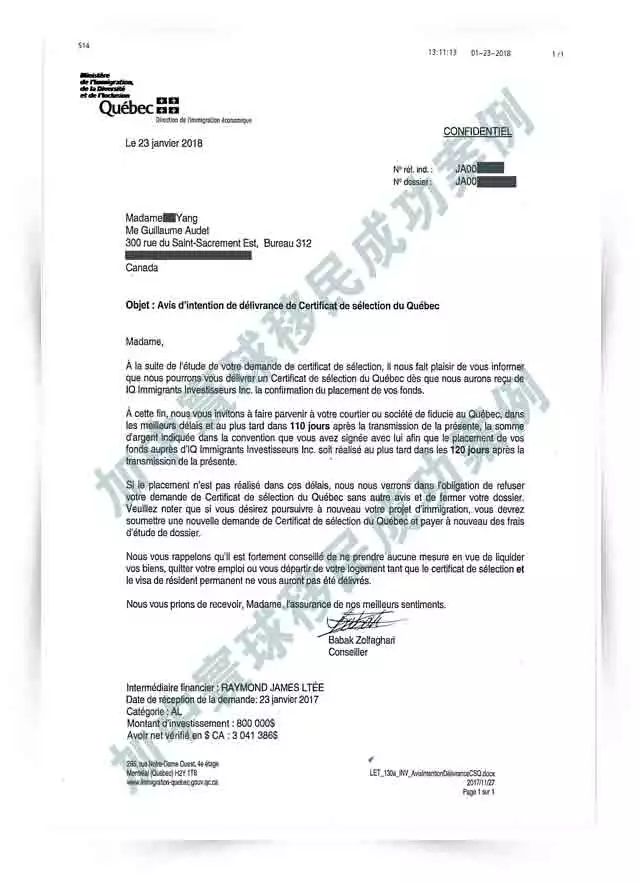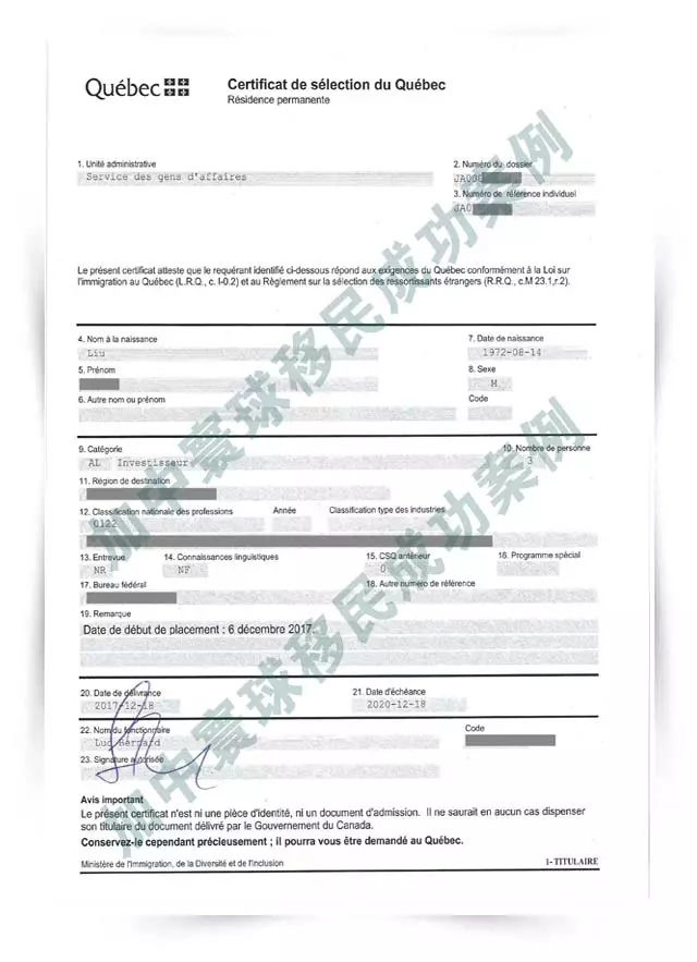 劉先生屬于一家知名企業的高管,做事穩重有主見,經朋友介紹,找到了加中寰球。他有著自己的移民規劃:孩子要接受英語教育,移民目的國要安全穩定,項目要穩妥可靠,對居住地沒有刻意要求。綜合劉先生的訴求,加中寰球的移民顧問幫助劉先生確定了加拿大魁投項目。確定了目標,劉先生的申請過程就變得相對容易了,僅12個月就拿到了魁省CSQ。恭喜劉先生!