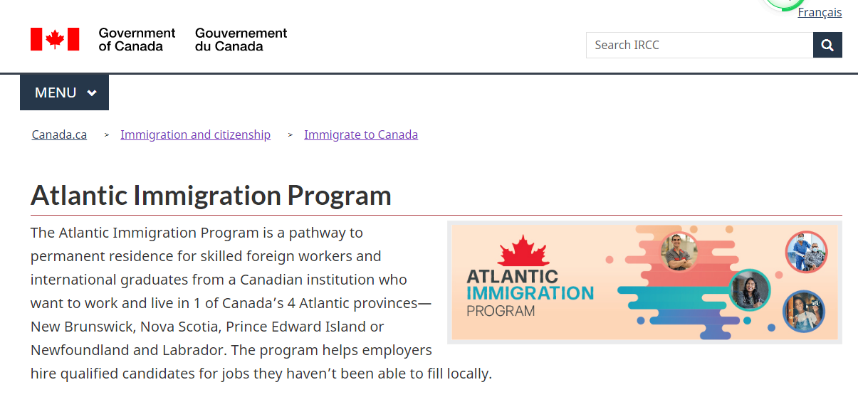 ![]() 官網(wǎng)鏈接:https://www.canada.ca/en/immigration-refugees-citizenship/services/immigrate-canada/atlantic-immigration.html |