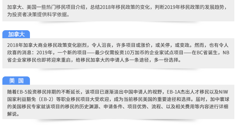 2019年1月26日加拿大、美國熱門移民項目說明會!