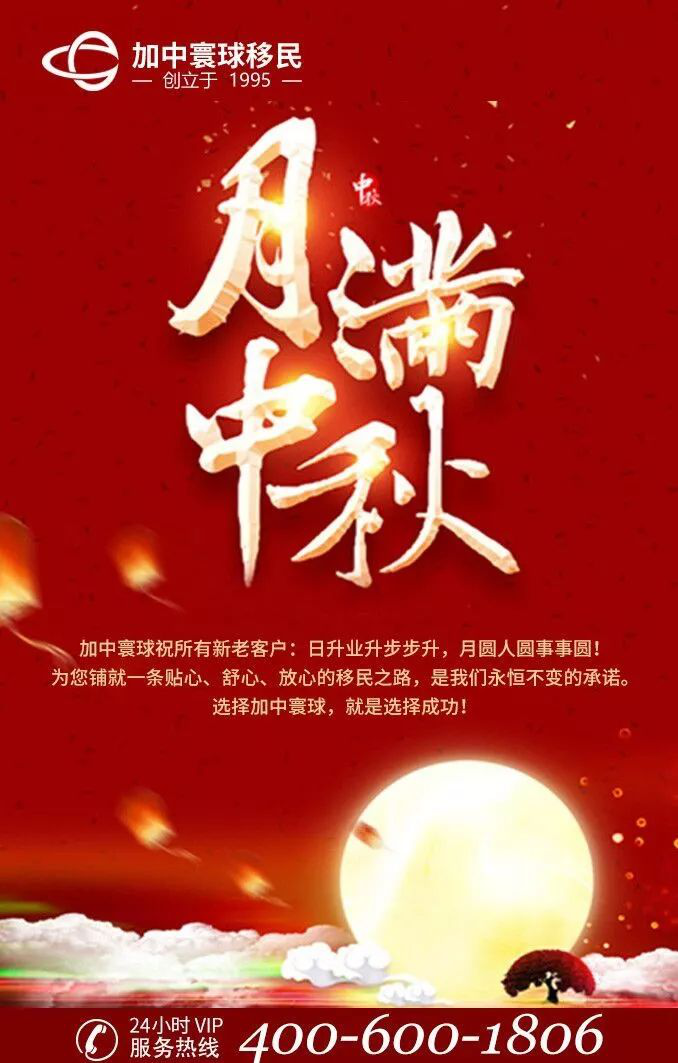 歲月不居,時節如流。2019年春節的煙花仿佛還在眼前閃耀,鞭炮仿佛還在耳邊回蕩,中秋節忽焉又至!在這月滿人和的傳統佳節,加中寰球真誠祝愿所有客戶: