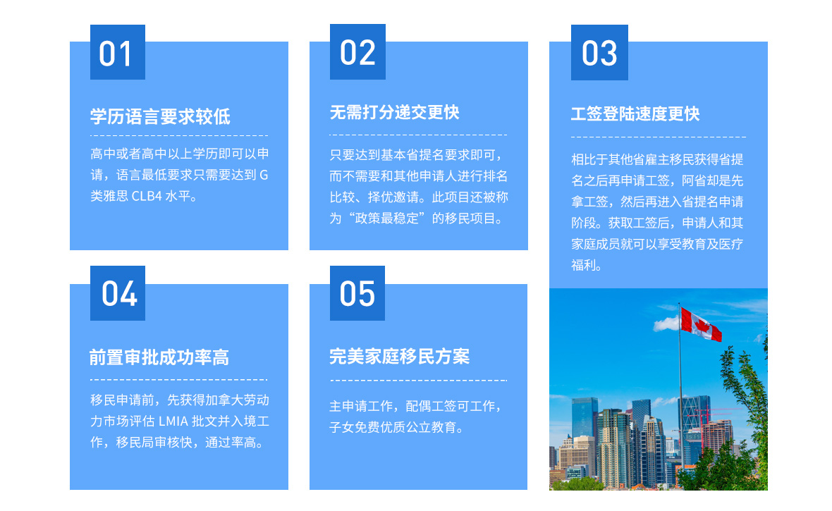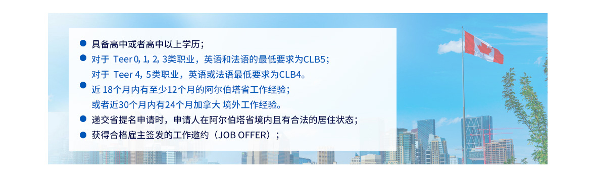 加拿大阿爾伯特省提名移民項(xiàng)目(Alberta Immigrant Nominee Program, AINP)是阿省政府和加拿大聯(lián)邦移民局一起操作的加拿大經(jīng)濟(jì)類移民項(xiàng)目,主要目的是通過(guò)吸引和保留可隨時(shí)的加拿大移民來(lái)帶動(dòng)阿省的經(jīng)濟(jì)發(fā)展。獲得阿爾伯特省提名的申請(qǐng)人,連同配偶和子女,可以作為阿省的被擔(dān)保人向加拿大聯(lián)邦申請(qǐng)永居簽證。加拿大阿省雇主擔(dān)保移民的條件較低,一人申請(qǐng)全家可移民加拿大。