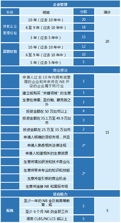 此次開放新增加EOI篩選過程,總分100分,申請(qǐng)人需達(dá)到65分以上才有資格獲得邀請(qǐng)。由于之前沒有任何積壓案例,重新開放的NB省企業(yè)家移民審理速度非??焖?,申請(qǐng)人有望在2年內(nèi)快速拿到楓葉卡。