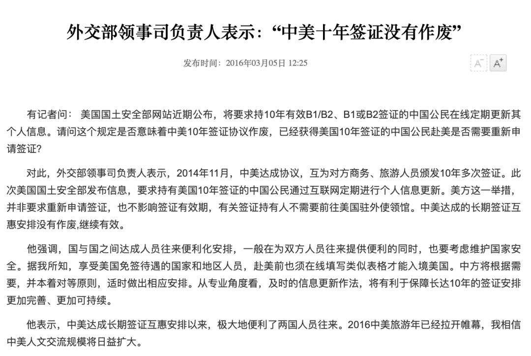 無獨有偶,4年前,也傳出了中美十年簽證取消的傳聞,最終被證實都是不實傳聞。