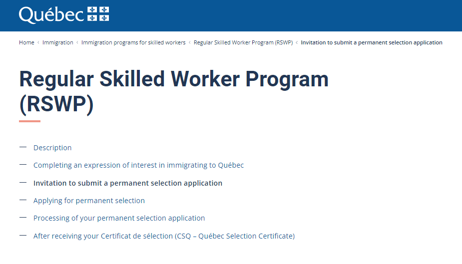 申請人將年齡、學歷、專業領域、語言水平、工作經驗等情況在魁北克技術移民arrima系統中進行打分,總分為1320分,由魁省移民局根據分數來發出邀請。如果申請人能獲得魁省政府批準后的工作Offer(Validated Job Offer,簡稱VJO)會額外獲加分(大蒙特利爾地區VJO 180分,大蒙特利爾區域外VJO 380分),從而提升被成功獲邀的幾率甚至不限分數直接獲邀。魁省移民局審核通過后會頒發魁北克省甄選CSQ證書,申請人再向聯邦申請永久居民身份。