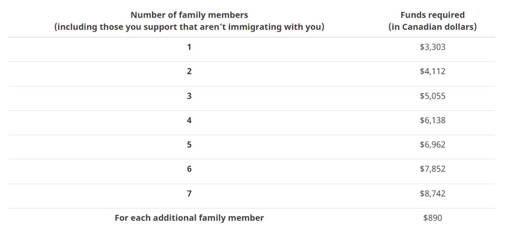 • 當您到達加拿大時,您需要有足夠的錢來支撐自己和家人的日常生活開銷。您需要的金額取決于您的家庭人數。如一家三口需要至少$5,055加幣的資金證明。