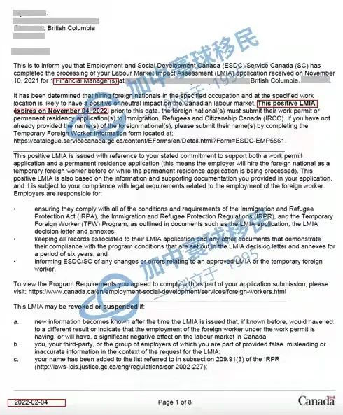 Y女士2月4日LMIA獲批,將搭乘EEBC省提名高速通道!