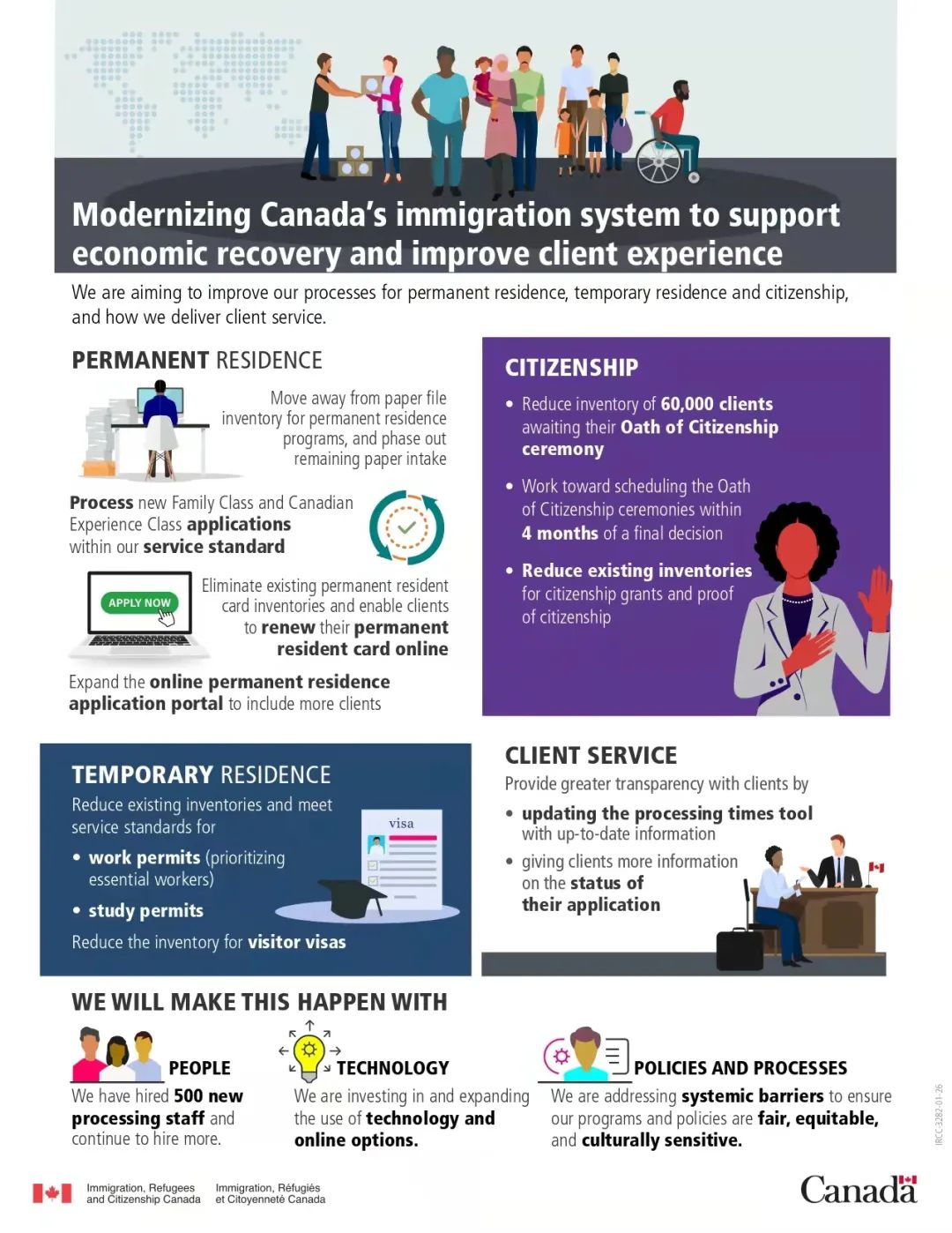 將學簽、工簽以及楓葉卡更新恢復到標準服務時間。加拿大政府已經撥款8500萬加元,專門用以減少IRCC所有業務部門的處理時間。同時也已經在全球CPC共額外招聘了500名簽證官,人手還在持續增加中。