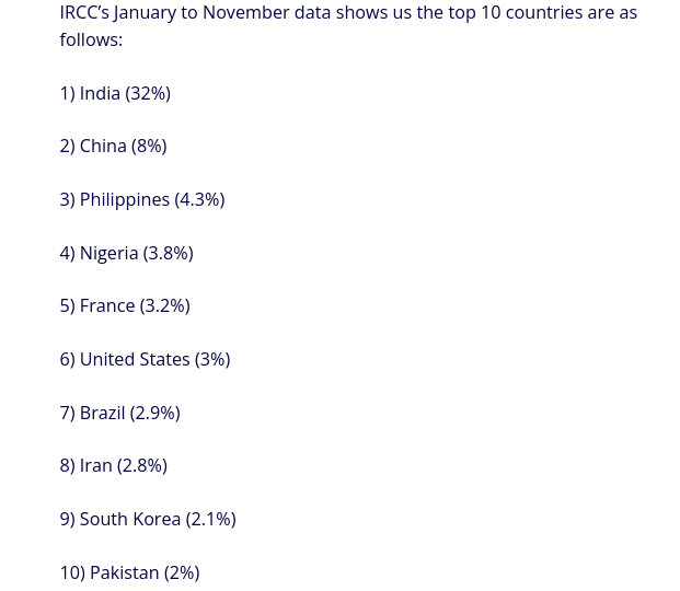 另據(jù)移民部公布的數(shù)據(jù),在2021年1月至11月期間的數(shù)據(jù),十大移民來源地分別是: