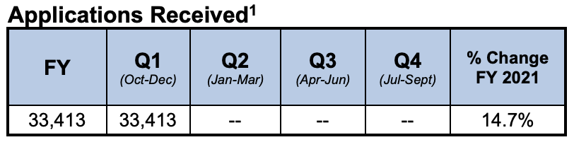 從申請(qǐng)數(shù)量上來看,2022財(cái)年第一季度美國(guó)勞工部一共收到了33,413份PERM申請(qǐng),數(shù)量上比2021財(cái)年同期上漲了14.7%。