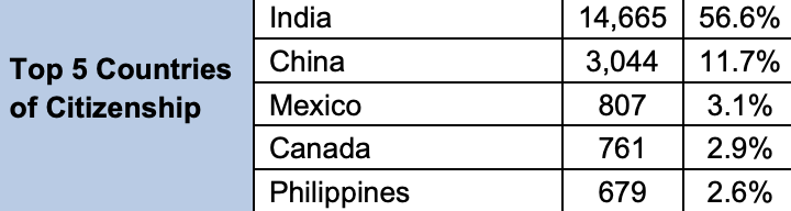 職業(yè)移民申請(qǐng)人來源國(guó)人數(shù)最多的毫無意外依舊是印度人,印度人的申請(qǐng)比例高達(dá)56.6%;中國(guó)公民申請(qǐng)比例為11.7%,位居職業(yè)移民申請(qǐng)數(shù)量第二位。