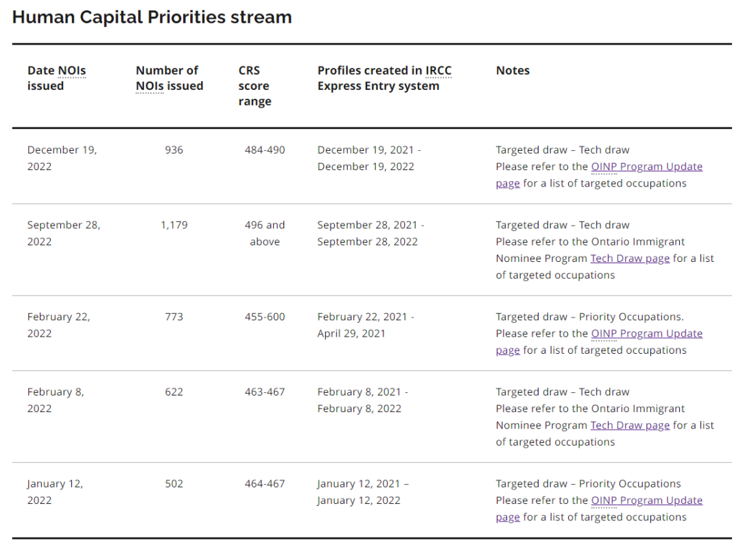 加拿大時(shí)間2022年12月19日,安省省提名辦公室(OINP)發(fā)布了最新抽選情況,向快速通道候選人發(fā)放936份邀請(qǐng),此輪為科技類優(yōu)才定向抽選(Tech Draw-Human Capital Priorities)。