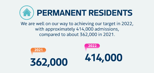 在永久居民PR方面,2022年前11個月,加拿大已經迎來414,000名新移民,而去年同期是362,000名。