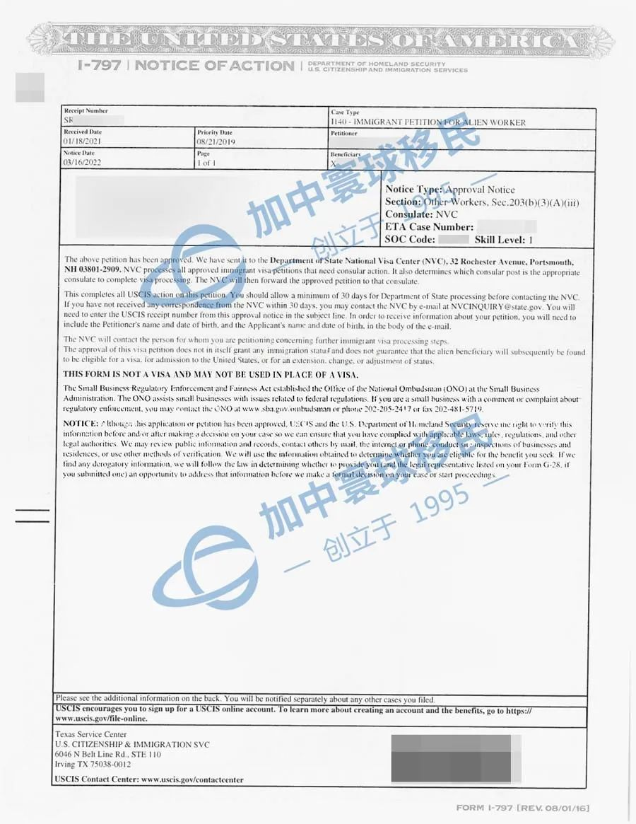 加中寰球客戶Z女士(財務分析員)申請美國EB-3雇主擔保移民項目,于2022年3月25日順利獲批I-140申請! 有關詳情如下: