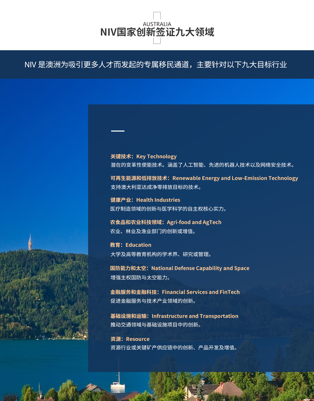 項目介紹 項目要求 九大領域 成功案例 項目流程 公司優勢 移民團隊