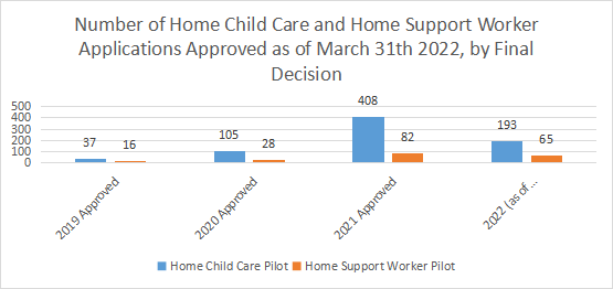 保姆移民項目在2017年到2021年期間,申請總人數從20,687下降到4,407,批準率也從97%下降到81%。