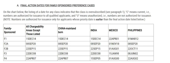 ② F2A(綠卡申請配偶和未成年子女):C (繼續保持無排期)
