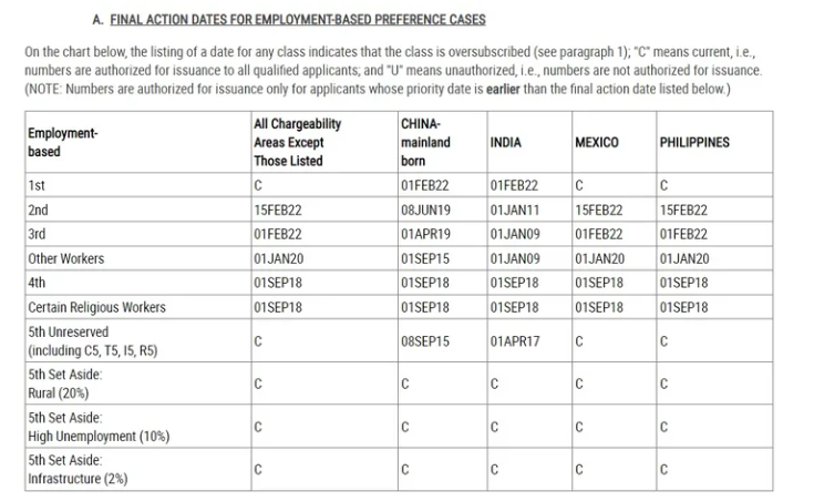 ① 第一類別(含EB1A杰出人才,EB1):2022年2月1日