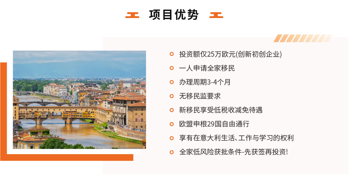 項目介紹 項目優勢 申請條件 投資選項 成功案例 申請流程 意大利優勢 文案團隊