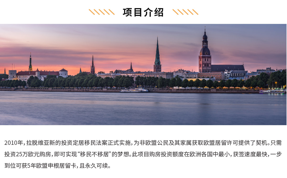 項目介紹 最新政策 投資金額 項目優(yōu)勢 購房流程 拉脫維亞優(yōu)勢 文案團隊