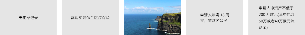 ![]() 投資要求: 投資100萬歐元至愛爾蘭央行批準(zhǔn)的基金投資或者政府批準(zhǔn)的企業(yè)投資; 捐款50萬歐元至藝術(shù)、體育、健康、文化或教育領(lǐng)域的愛爾蘭公益項目中。(團體捐贈捐為40萬歐元) |