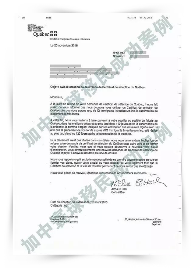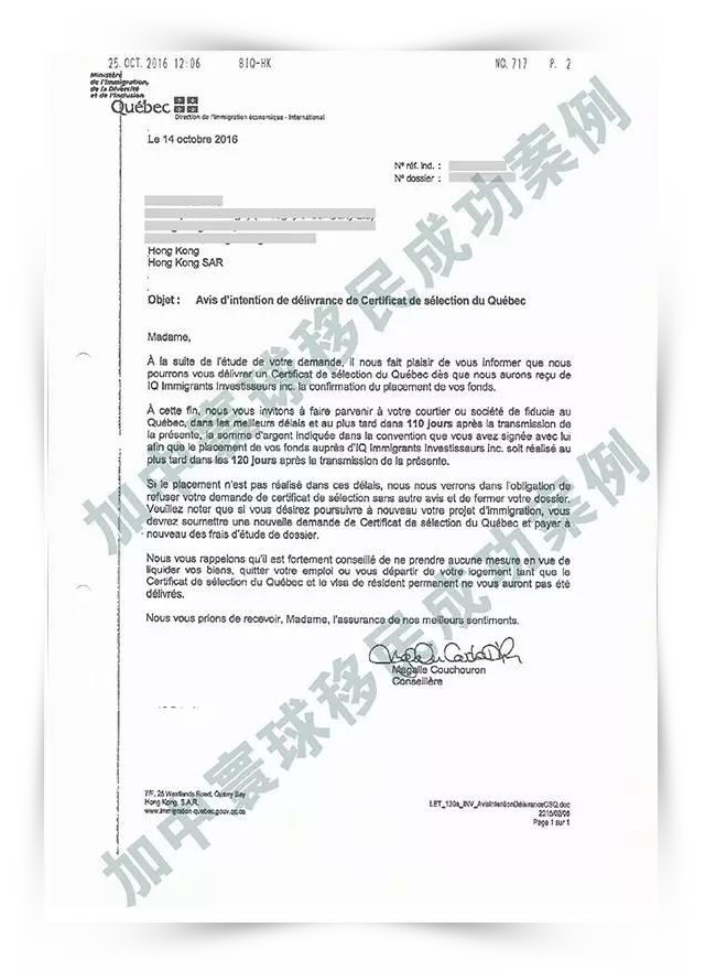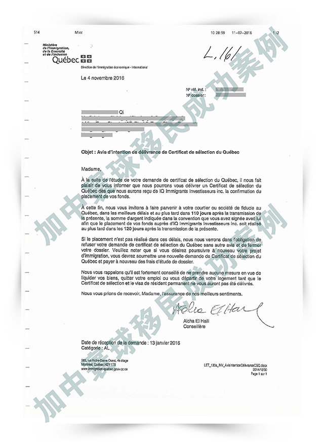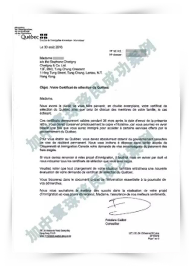 加中寰球根據(jù)Q女士背景迅速擬定了申請方案,并安排資深文案經(jīng)理全程指導(dǎo)Q女士準(zhǔn)備申請材料,一步到位鎖定名額。順利將材料遞交到魁北克移民局。當(dāng)初的努力終獲回報(bào),收到魁北克通過信。