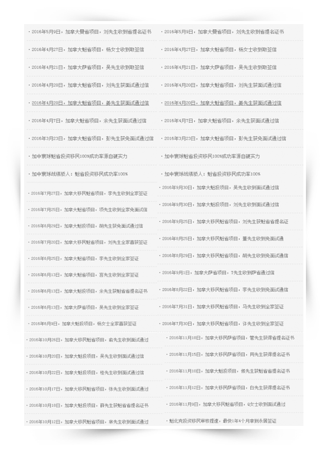 加中寰球魁省投資移民成功案例又創(chuàng)歷史新高,總體成功率達(dá)到99%,免面試通過的達(dá)到60%左右。