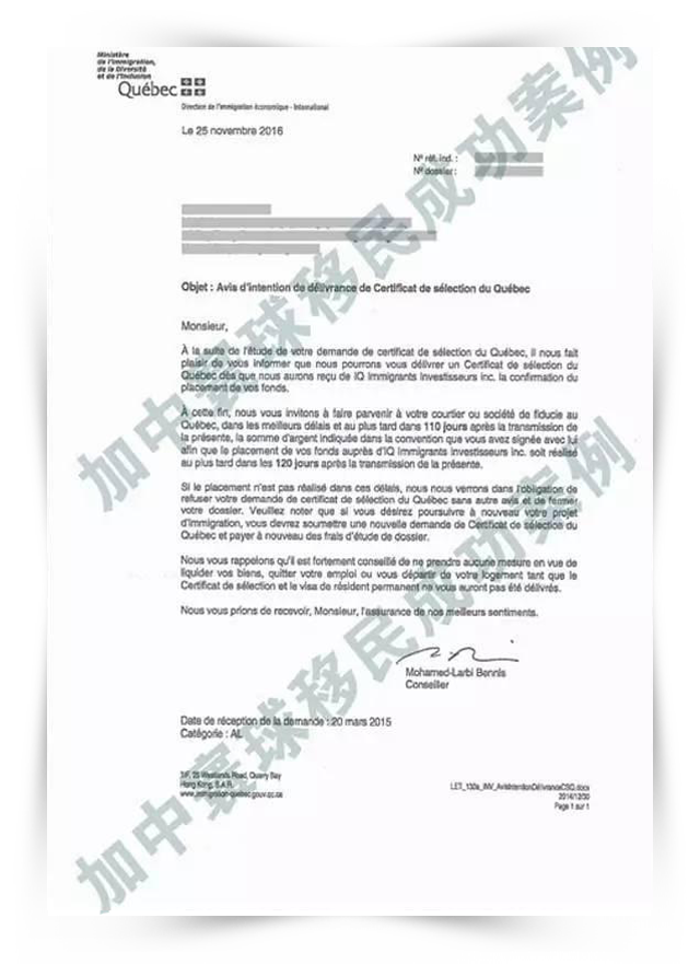 上市公司高管,一直鐘情加拿大魁北克,喜歡那里的環(huán)境福利,希望能讓孩子接受更好的教育。客戶此前有“魁投”意向,曾在多家機(jī)構(gòu)進(jìn)行咨詢,這些機(jī)構(gòu)給客戶的答復(fù)均是:條件不是很匹配,無法做魁北克投資移民的申請。但是經(jīng)過我們顧問和移民專家分析,G先生的條件是可以通的,簽約后,顧問和文案對G先生的材料進(jìn)行分析,調(diào)整策略,重新梳理材料,制作材料,功夫不負(fù)有心人,經(jīng)過公司咨詢團(tuán)隊(duì)和文案團(tuán)隊(duì)的共同努力,G先生成功獲得了魁省免面試通過信。