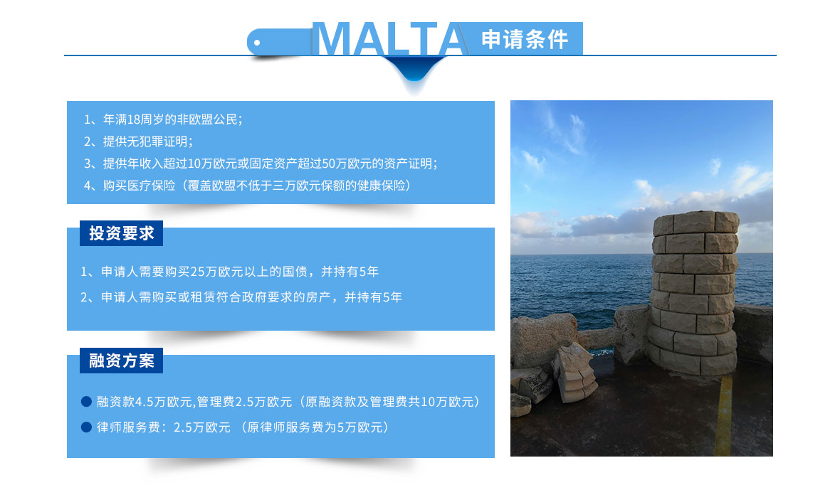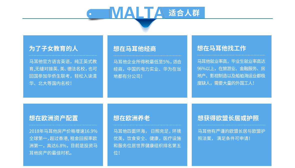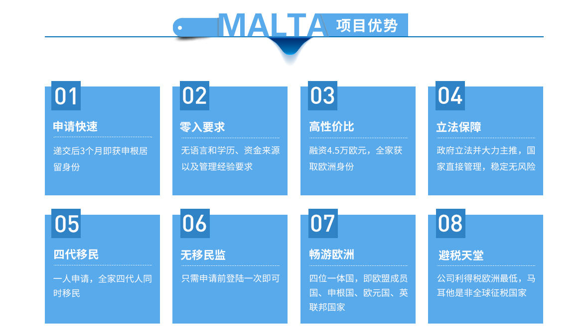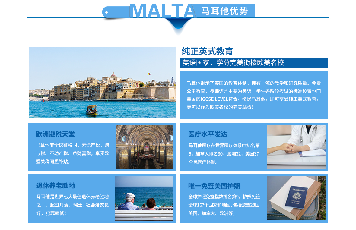 如果您有海外投資、開辦企業避稅、分散國內投資風險、海外貿易等需求,或是希望在馬耳他工作、享受馬耳他超優質的教育和醫療服務,抑或是渴望擁有 一張歐洲自由通行證,那么馬耳他投資居留計劃都是您的絕佳選擇! |