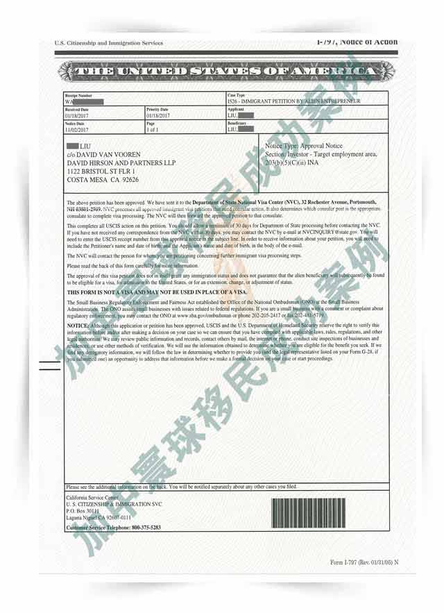 劉先生的申請過程非常順利,2017年1月18日,全套資料遞交移民局,1月20日拿到建檔信,11月10日獲取I526通過信,歷時10個月,未補件。
