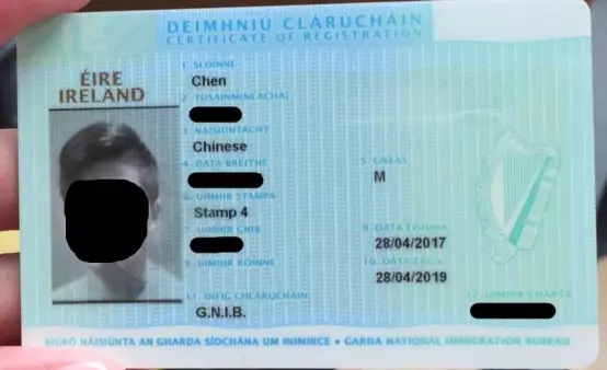還有,今年4月份我已經拿到了2年的身份居留,GNIB卡,還錄了指紋。