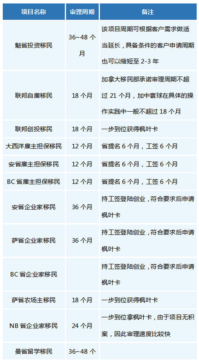 加拿大移民各項目辦理周期分析