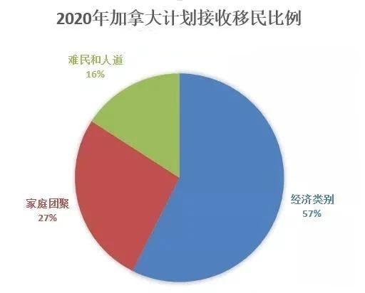 加拿大2020~2022年移民水平計劃繼續延續將經濟類別作為加拿大移民的主體,其中57%的移民將通過EE、各省提名計劃、魁北克的計劃以及大西洋移民試點(AIPP)等途徑實現。每年近10,000個配額的增長部分,大多也給了經濟類別移民。除了主體經濟類別之外,家庭團聚占27%的份額,其余的16%將出于人道主義和同情的理由而被接納。