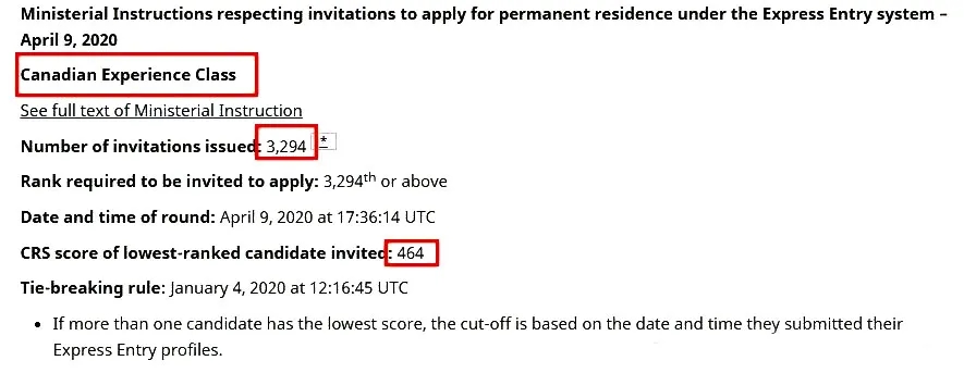 2020年4月9日,聯邦快速通道Express Entry進行最新一輪篩選,加拿大移民史上首次一天兩次抽簽,分別是針對CEC類別及省提名PNP類別發出的特殊邀請。